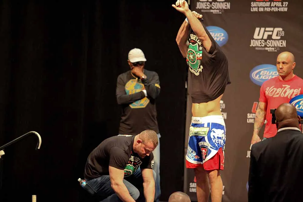 EDGE covered UFC 159 at the Prudential Center in New jersey and captured these great photos at the weigh-ins. Check out these hot fighters as they take their clothes off to step onto the scale!
