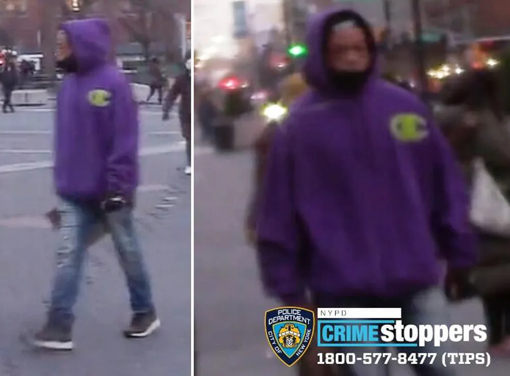 The alleged assailant was reported by AMNY to be "a Black man between the ages of 25 and 30 years old" who was "wearing a purple hooded sweater, blue jeans and black sneakers."